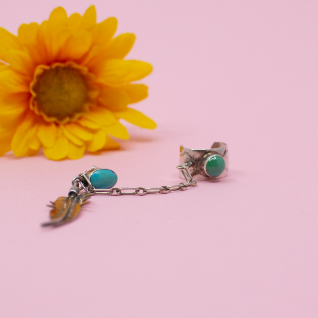 925 Silber Navajo 'Sklave' Ohrring, Feder & Türkis